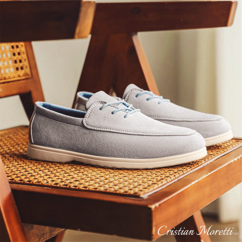 The Firenze Loafers are made from a soft suede-like fabric that feels light on the feet and smooth to the touch. With their clean slip-on shape and gently rounded toe, they bring a relaxed elegance to warm-weather tailoring, travel days, or casual dinners.
