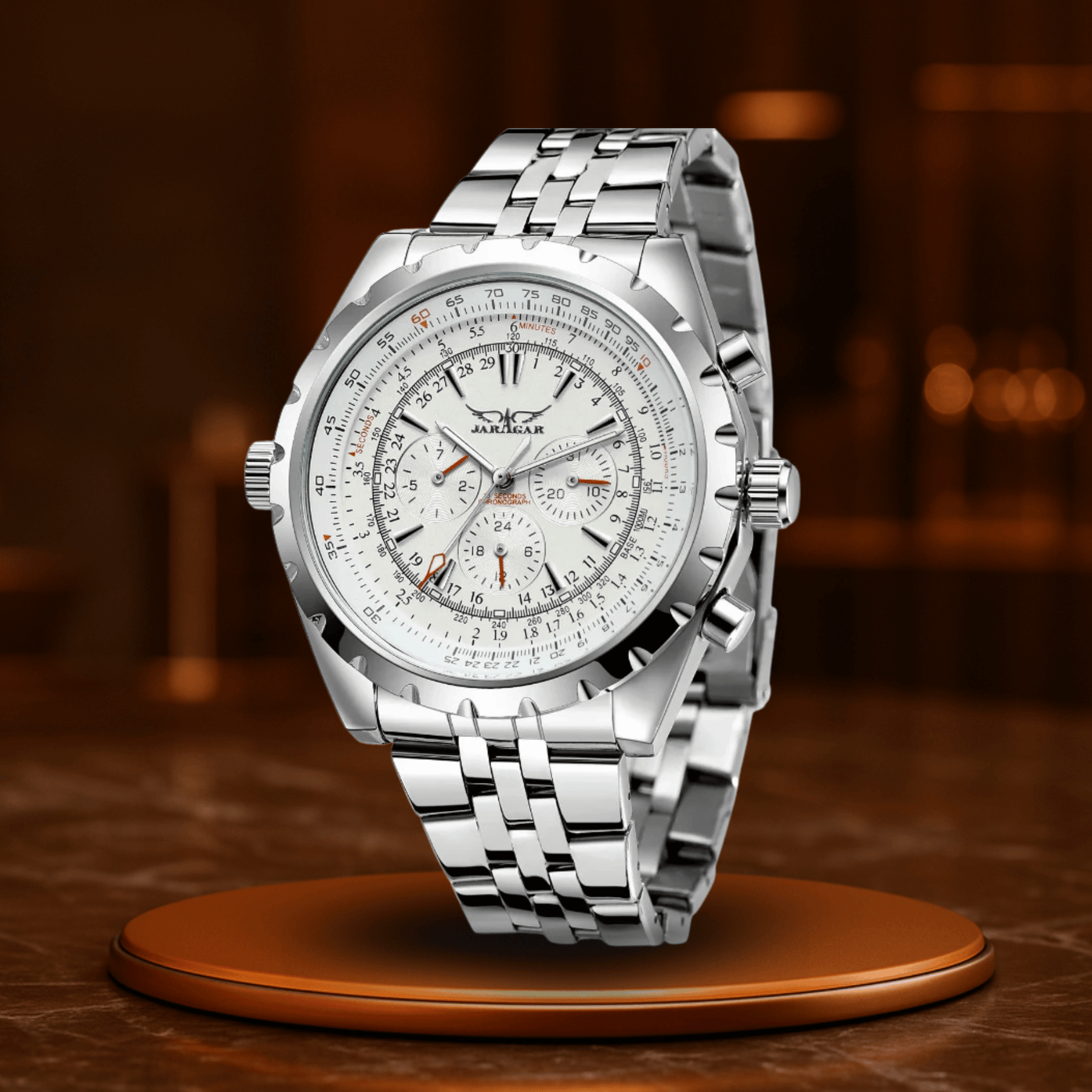 The design, inspired by military determination and French nobility, unites robust aesthetics with flowing elegance. Whether you are talking to investors or enjoying whiskey after sunset – this watch speaks before you do.