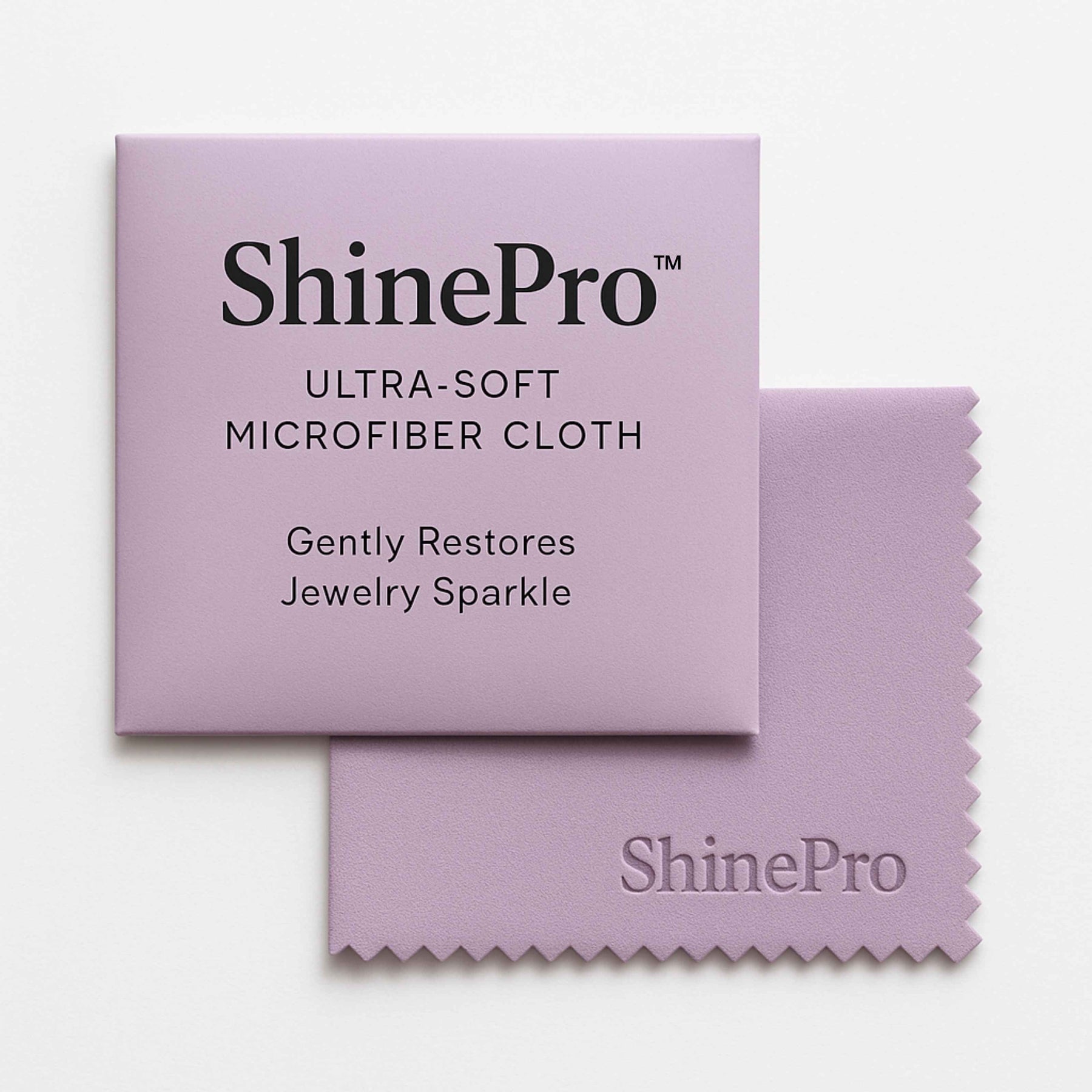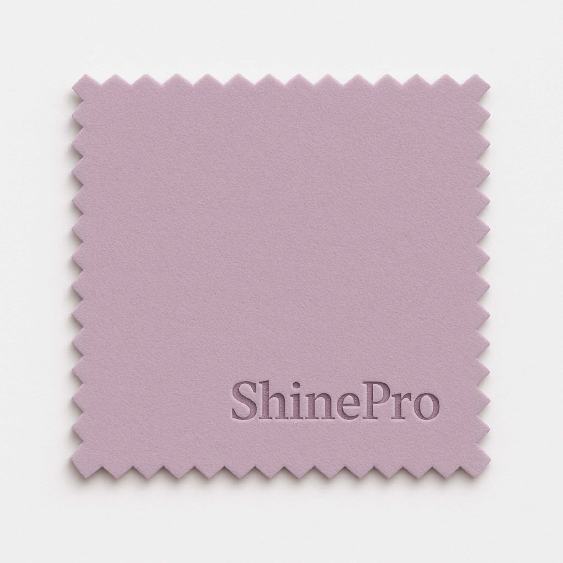 the ShinePro™ Jewelry Cleaning Cloth is crafted from high-quality, suede-like microfiber designed to gently and effectively restore the natural brilliance of fine jewelry. Its soft lavender tone reflects understated elegance, while the material ensures safe use on gold, silver, platinum, and delicate gemstones.