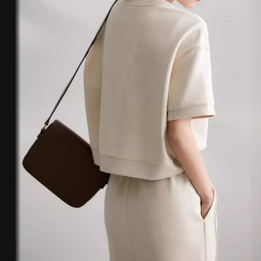 Women’s Two-Piece Set – Cotton Blend – Relaxed Fit – Short Sleeve Top & Midi Skirt
