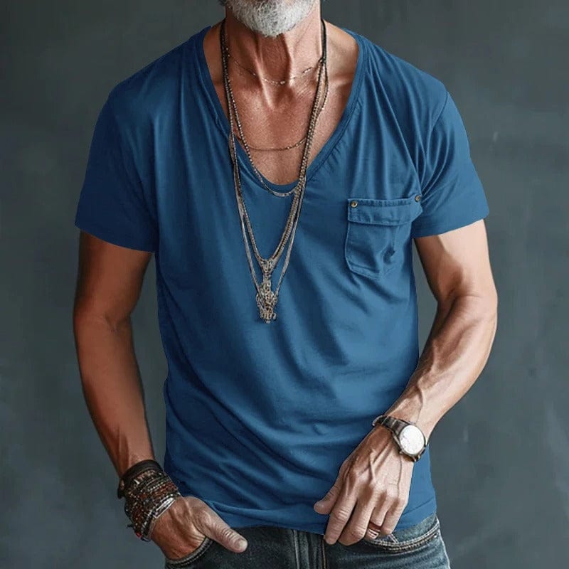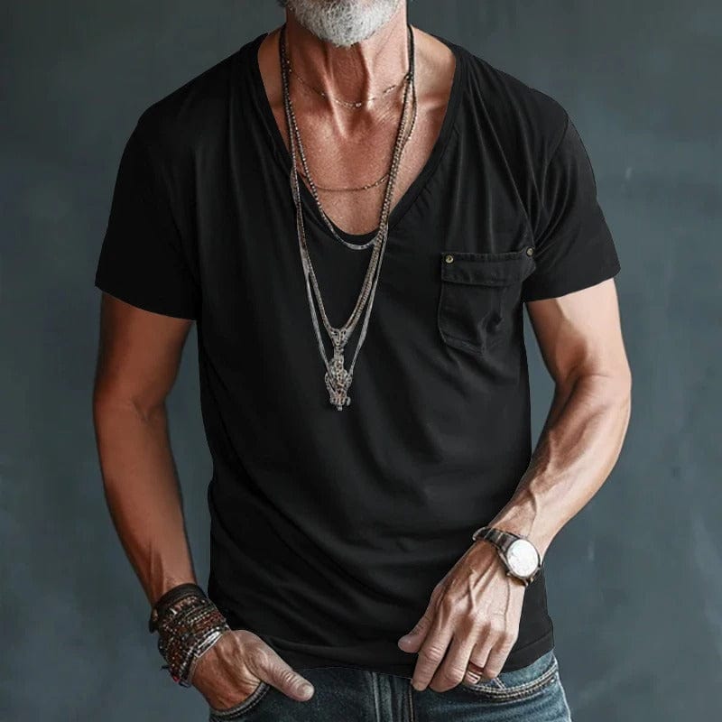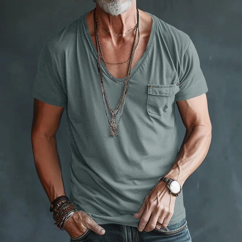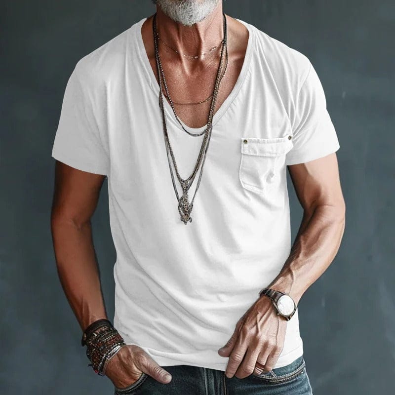 - Effortlessly stylish with a relaxed neckline and raw-edge pocket.